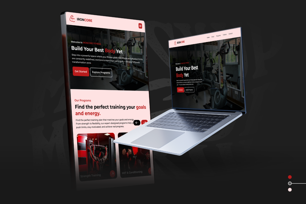 A high-impact fitness website designed to engage users and drive action, featuring bold typography, powerful visuals, and a dynamic layout that captures attention instantly. Clear call-to-action sections guide users toward memberships and training programs, while the overall interface reflects strength, discipline, and a results-driven mindset.